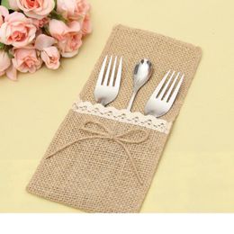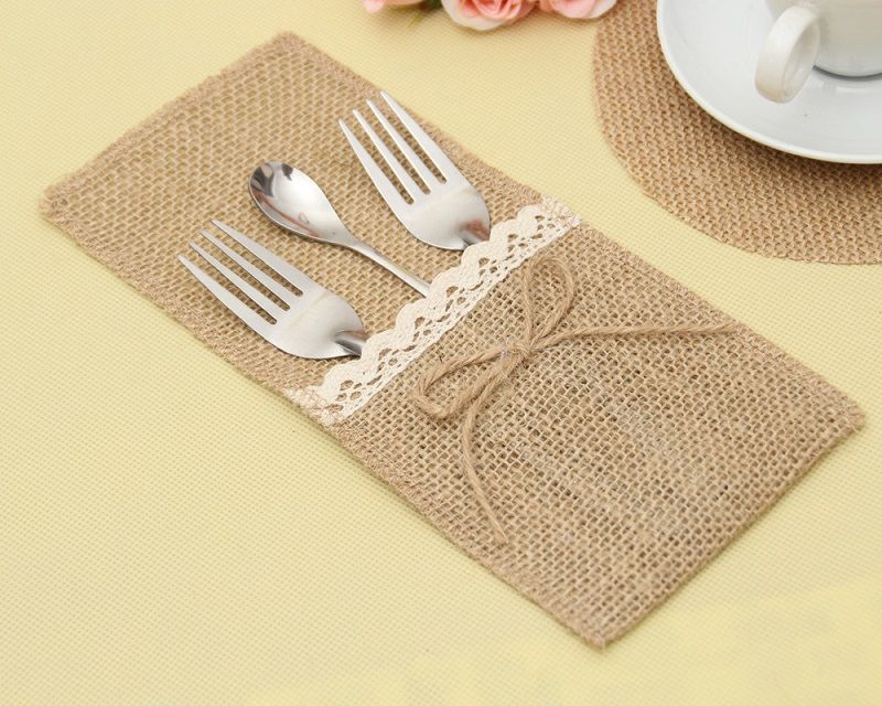 Sh Country Wedding Table Silverware Holder Natural Burlap Cutlery