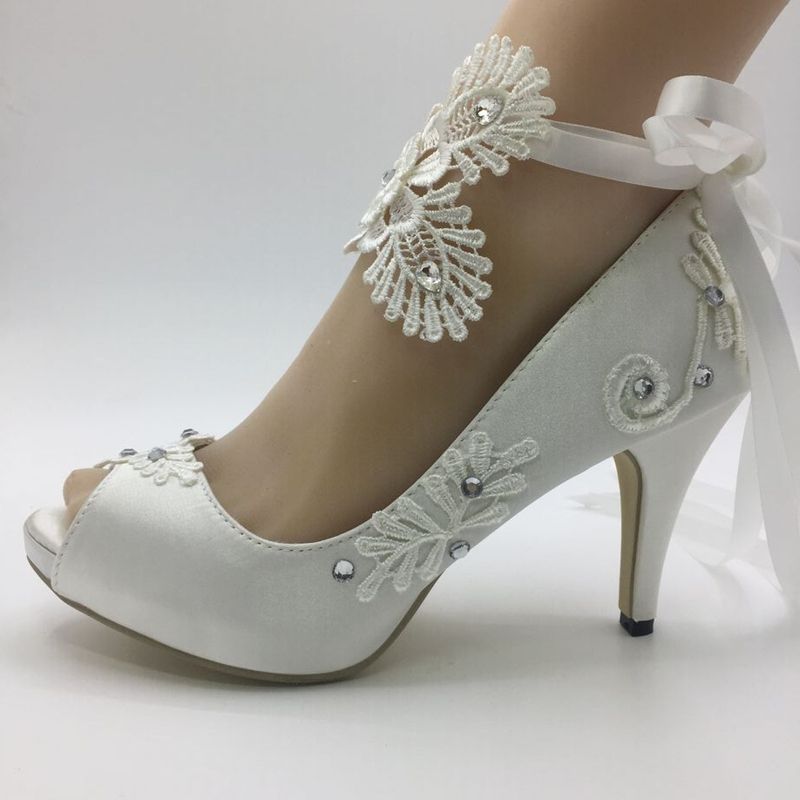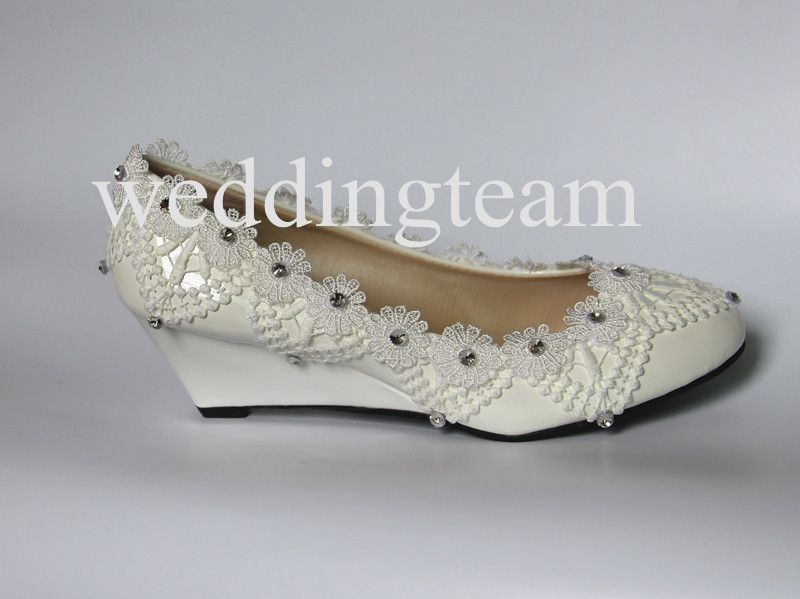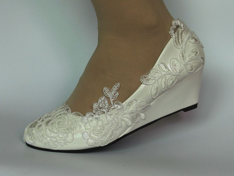 Lace White Light Ivory Wedding Shoes Flat Low High Heel Wedges